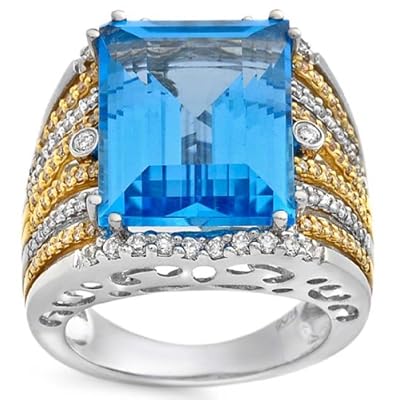 14k White Gold Diamond and Blue Topaz Ring, Size 6.5 (0.63 cttw)